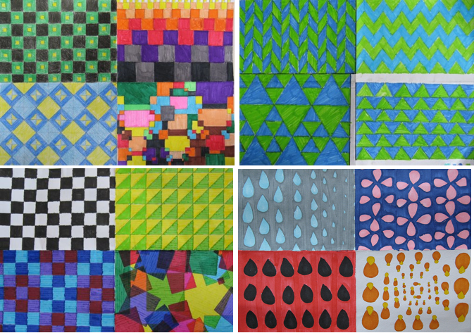 Rhythm / Pattern: pattern is a combination of elements or shapes repeated in a recurring and regular arrangement; rhythm–is a combination of elements repeated, but with variations. source
