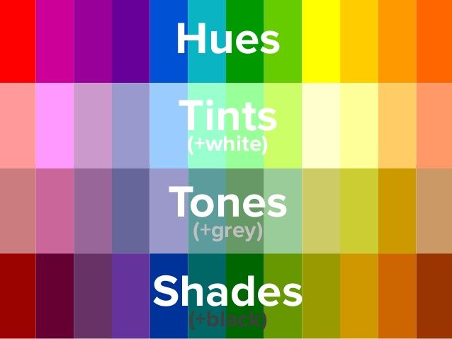 Shade: Term for a color darkened with black. source