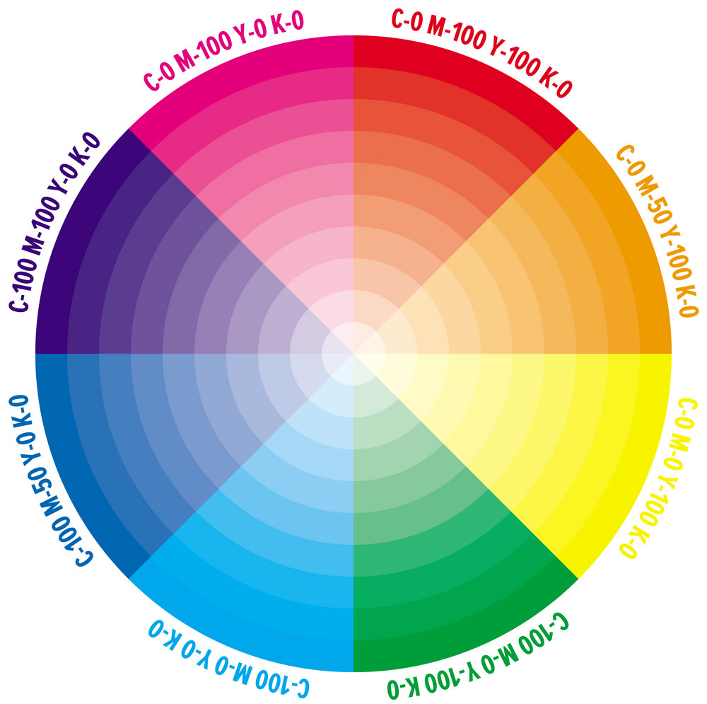 CMYK Color: Stands for “Cyan Magenta Yellow Black.” These are the four basic colors used for printing color images. Unlike RGB (red, green, blue), which is used for creating images on your computer screen, CMYK colors are “subtractive.” This means the colors get darker as you blend them together. source