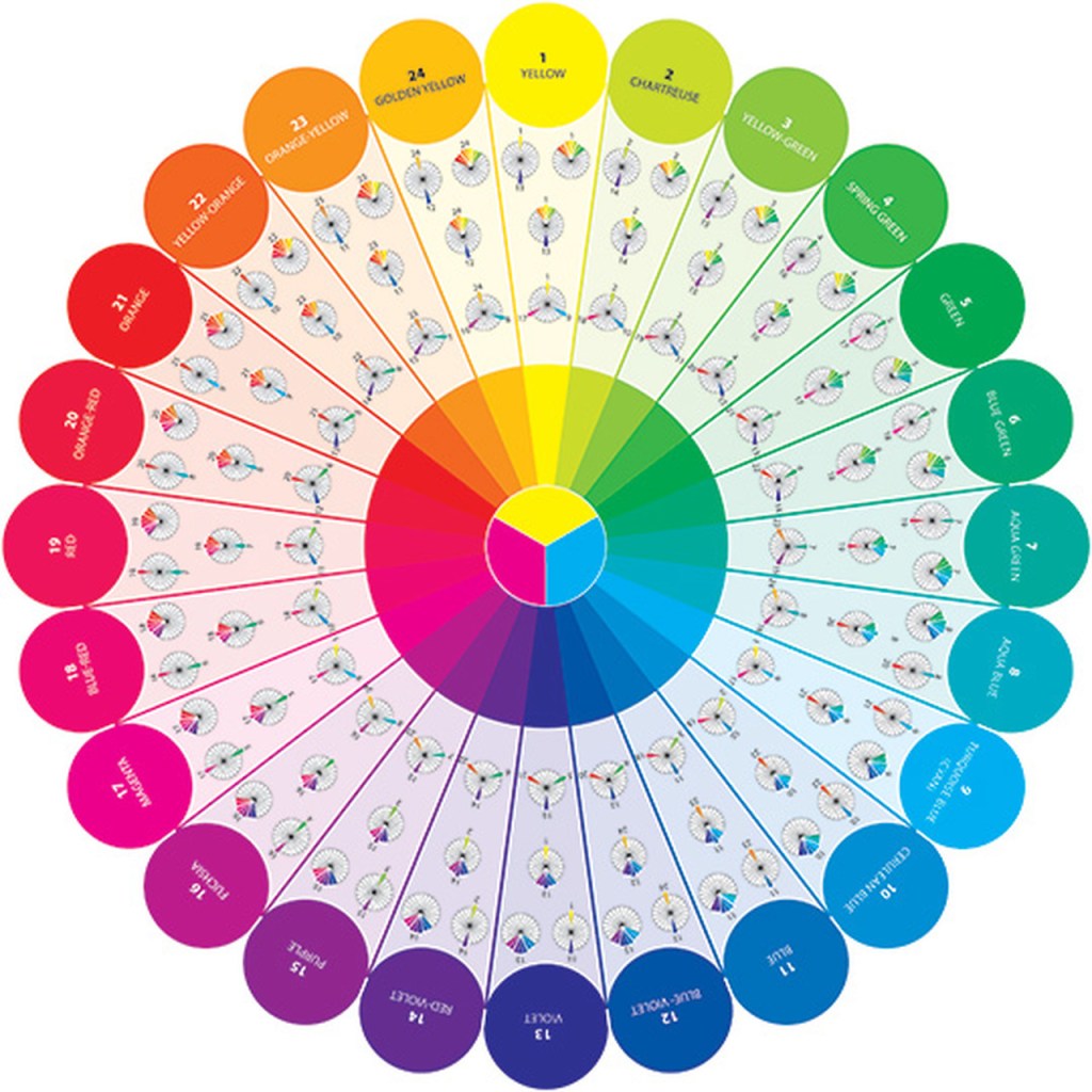 Color Wheel: a visual representation of colors arranged according to their chromatic relationship. source